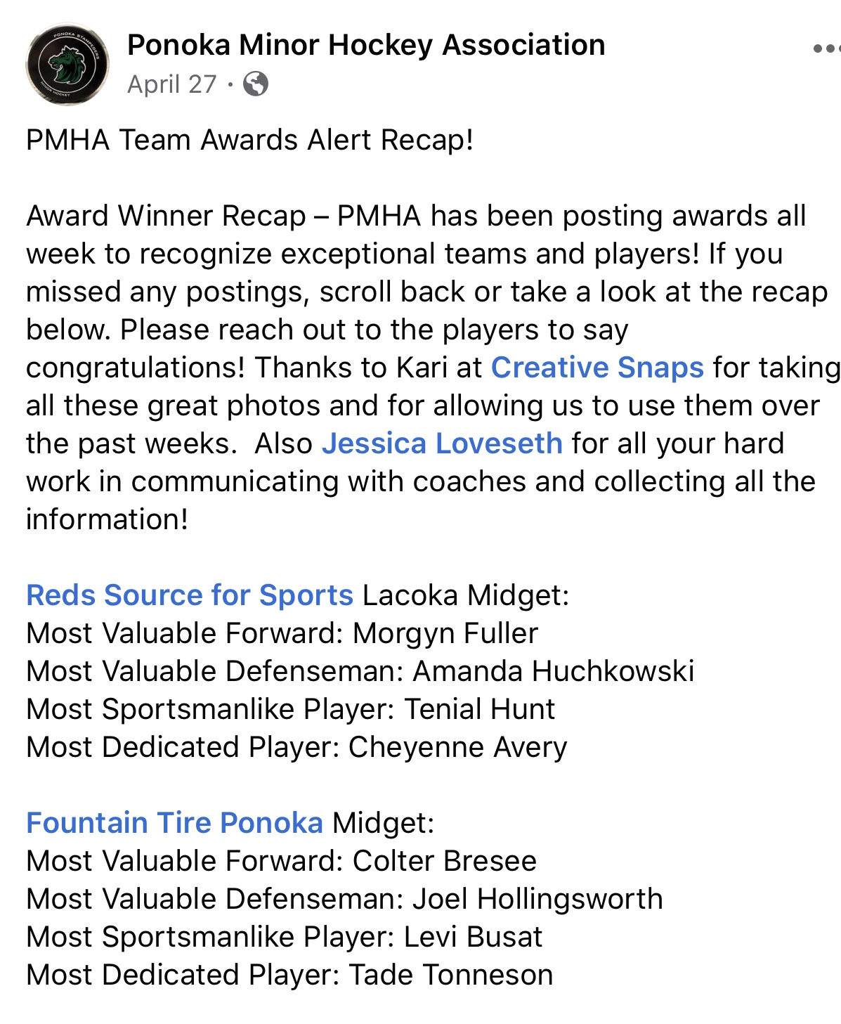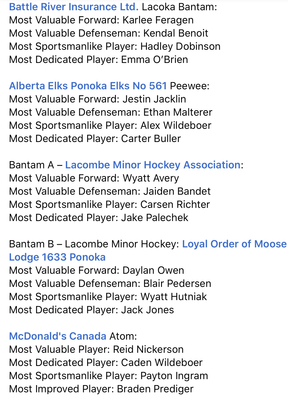 Ponoka Minor Hockey Association Information